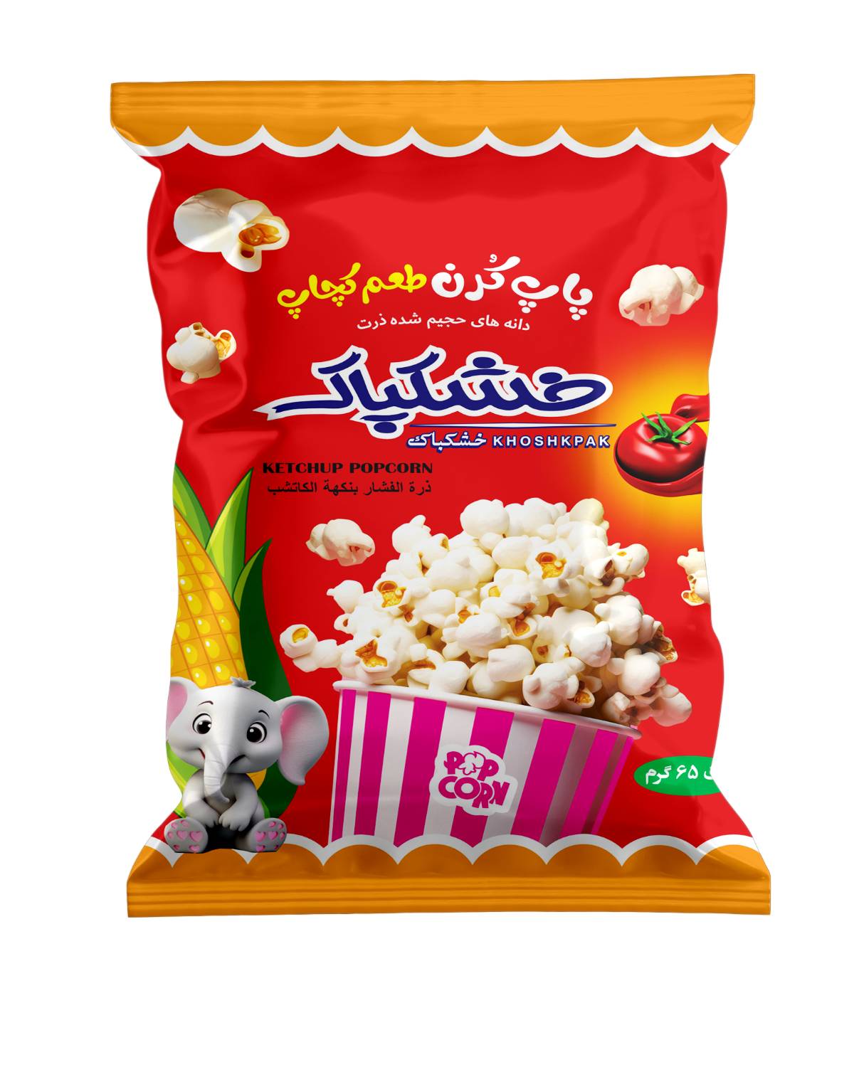 خشکپاک فروشگاه آجیل پاپ کورن با طعم کچاپ 65 گرم