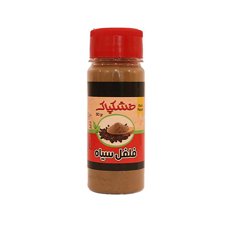 پودر فلفل سیاه ۸۰ گرم ظرفی خشکپاک: فلفل سیاه تازه و معطر خشکپاک، خوشمزه ترین ادویه در جهان است. این ادویه محبوب، عطر و طعمی بیبدیل به غذای شما می بخشد.